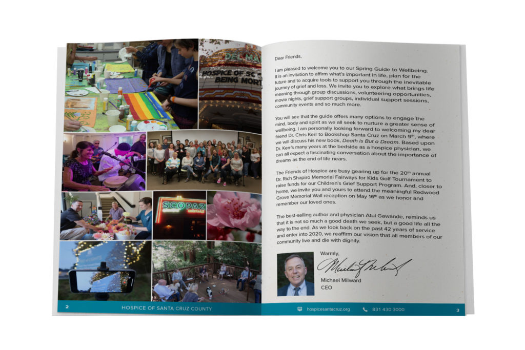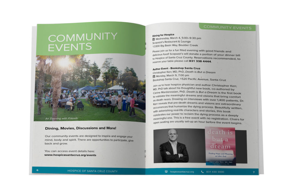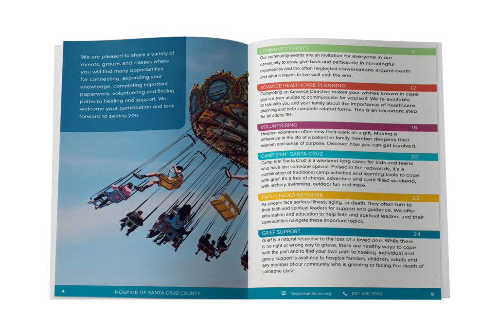 Bi-annual booklet of program offerings for Hospice of Santa Cruz County.