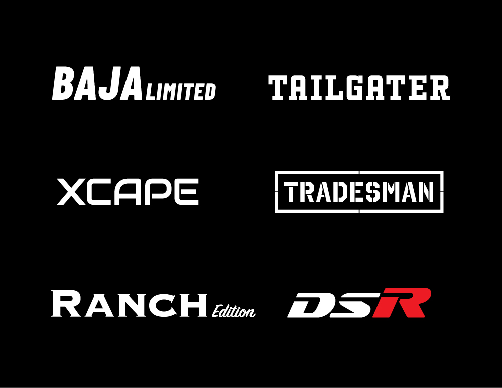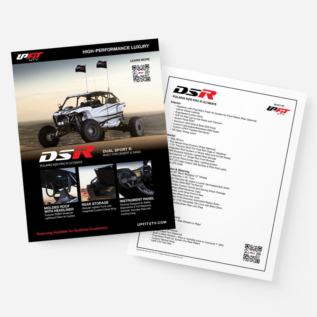 Print layout and production for UpFit UTV. Logo design for model designations.